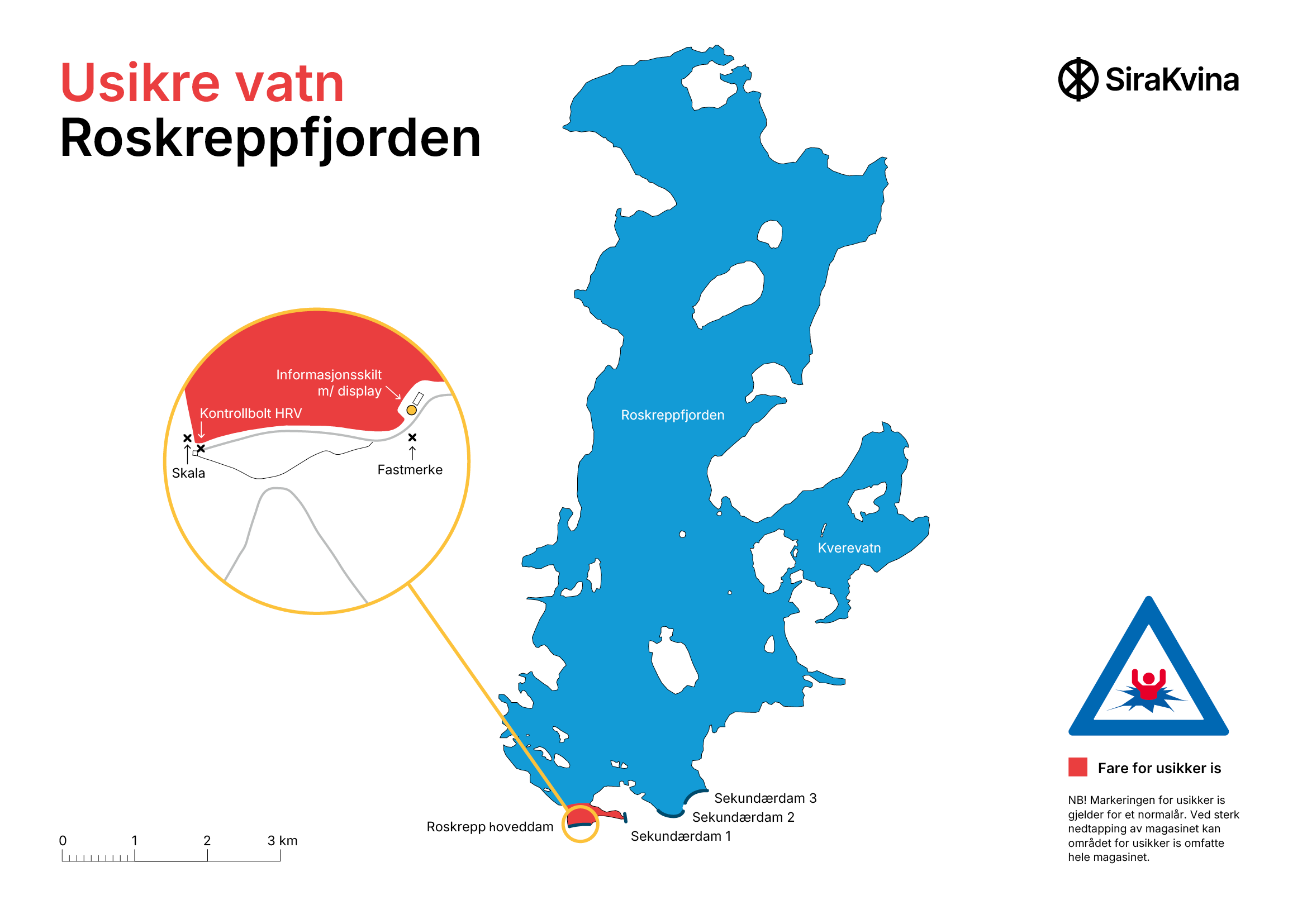 Her vil du vinterstid finne informasjon om istykkelse og andre forhold som kan påvirke ferdsel på våre regulerte magasiner. Husk at istykkelsen normalt varierer på et vann. Isobservasjonene er kun punktobservasjoner, og vi oppgir minste istykkelse som er målt på det aktuelle magasinet. (På magasinene Valevatn/Kvifjorden/Nesjen er det istykkelsen målt i kvistet løype som er oppgitt). Bruk disse opplysningene sammen med din egen kunnskap og fornuft.