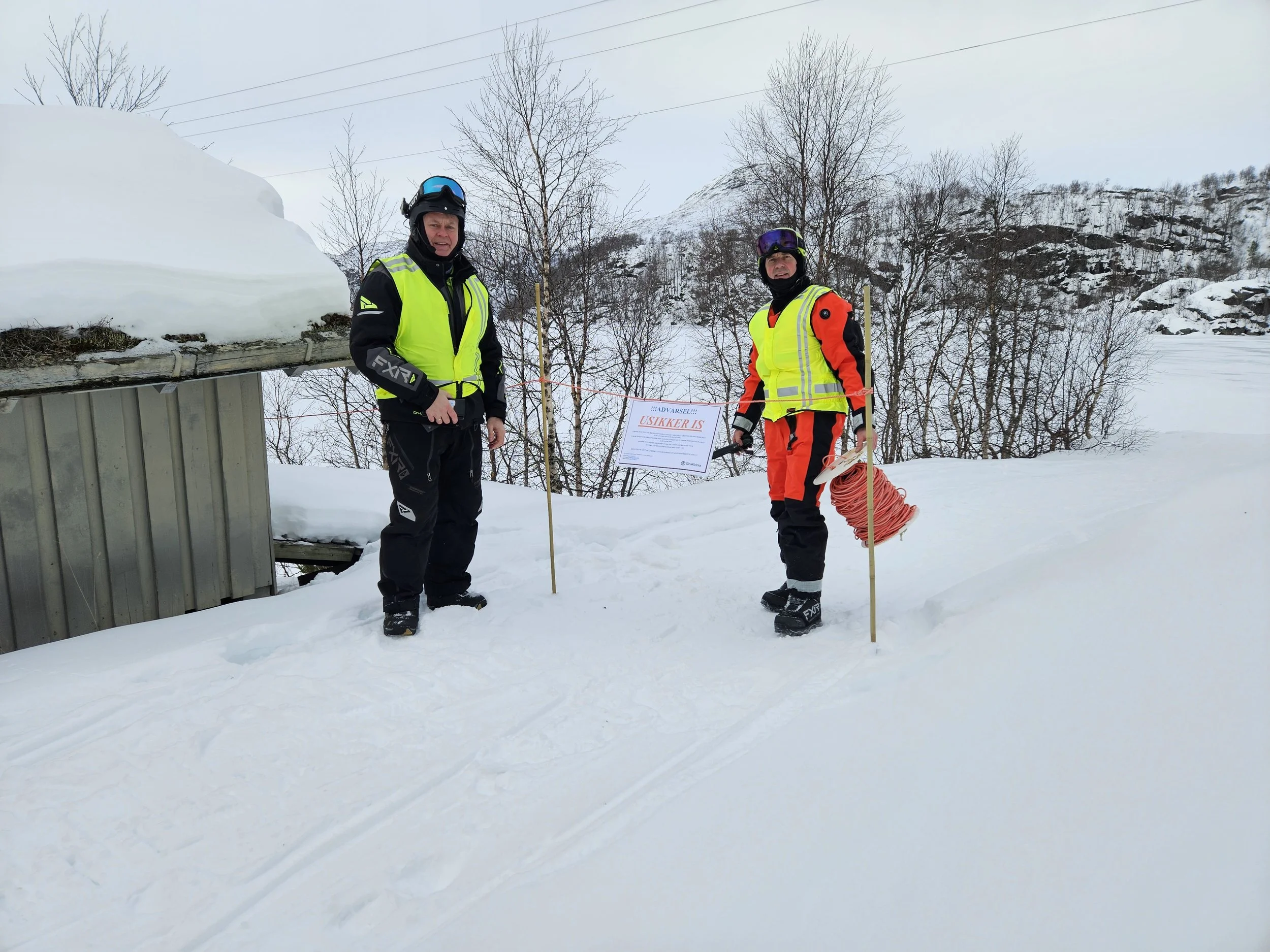 Kjentmennene Geir Åsbjørn Ovedal og Morten Tonstad har satt opp varslinger og sperrebånd ved Valevatn.